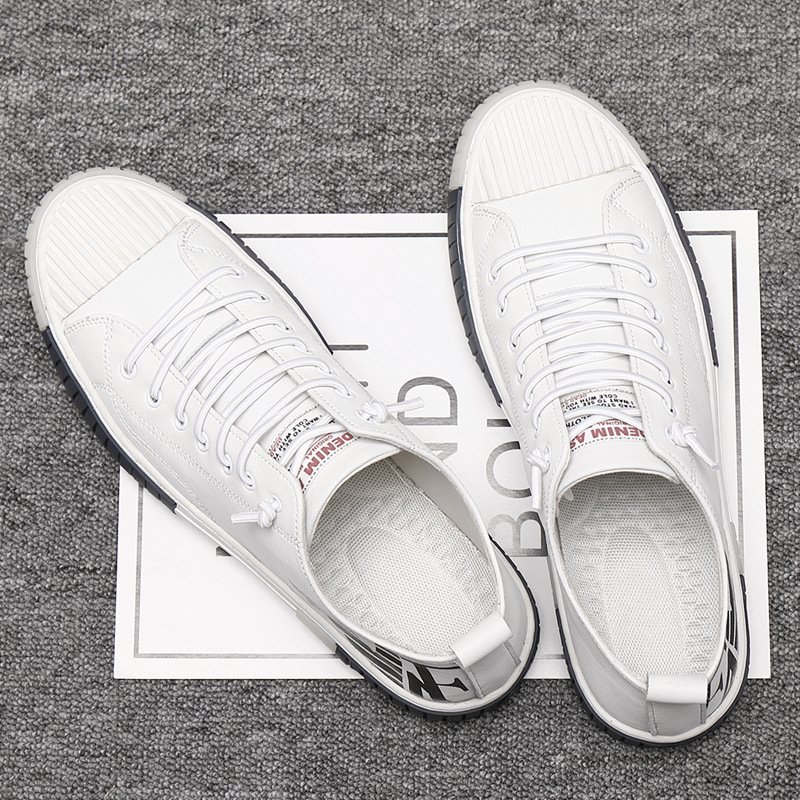 Summer men's board shoes soft leather European station white shoes men's leather trendy shoes shell-toe daily casual shoes